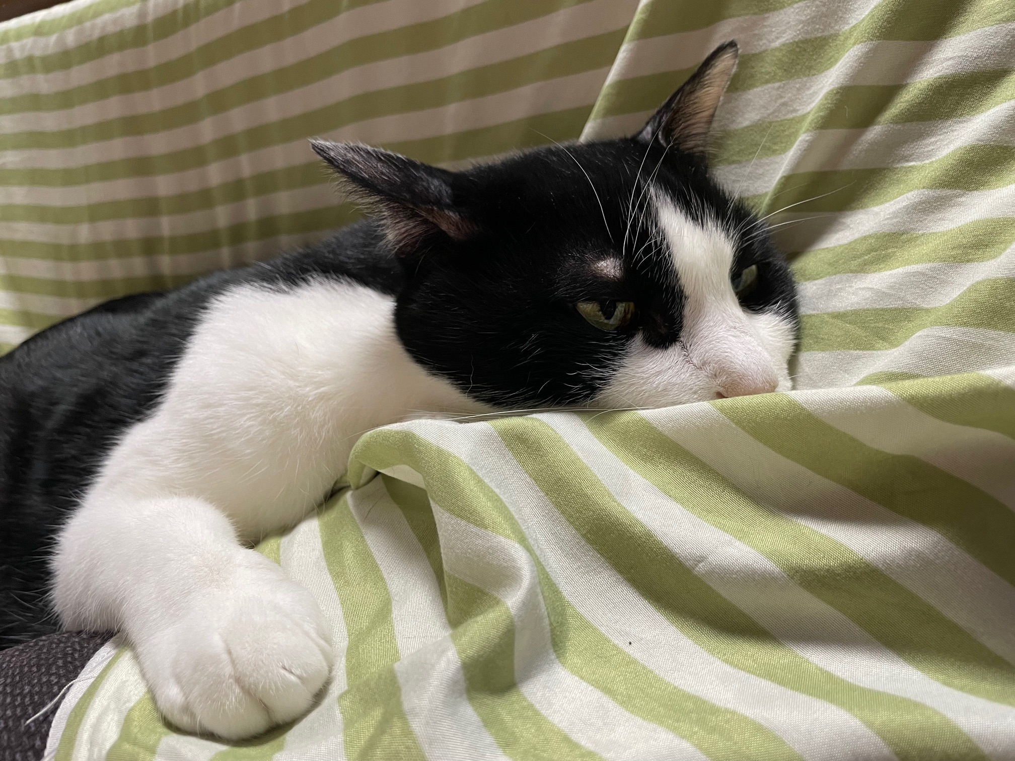 ちょっと寒くなってきたので暖かいベッドで寝ていました![]()