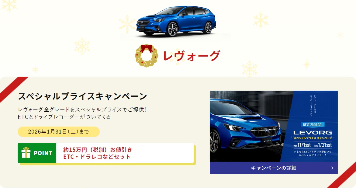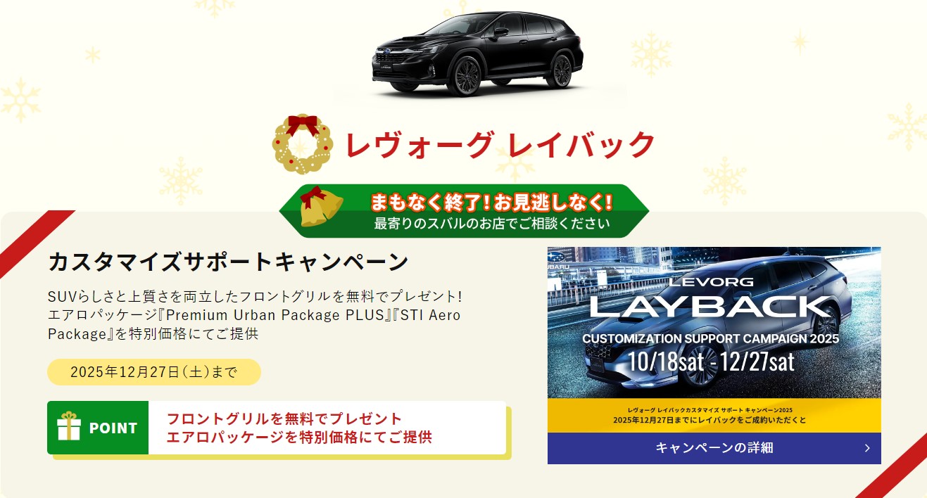 今年のSUBARUのクリスマスはおトクなキャンペーンが目白押し!