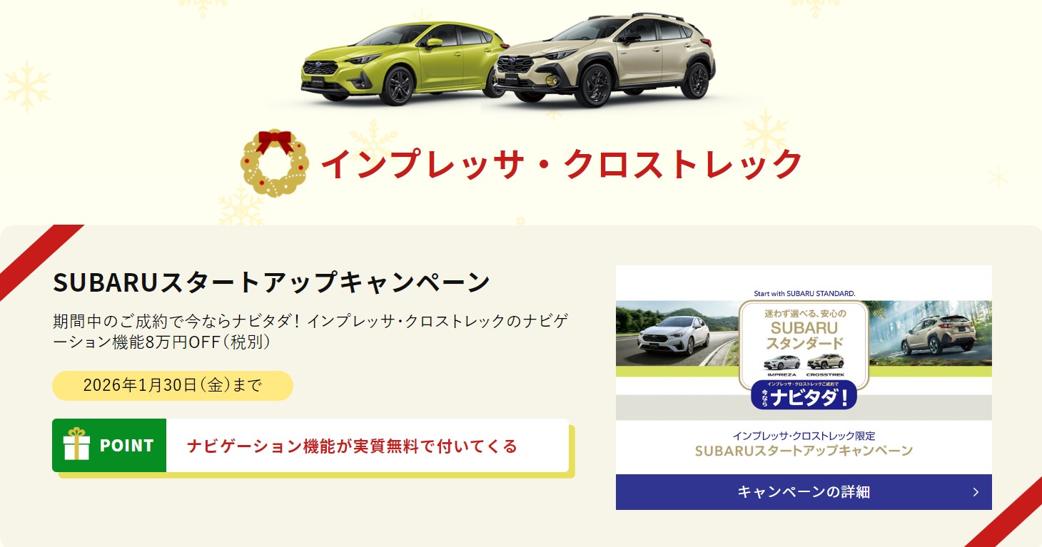 期間中、インプレッサ・クロストレックの対象グレードご購入で