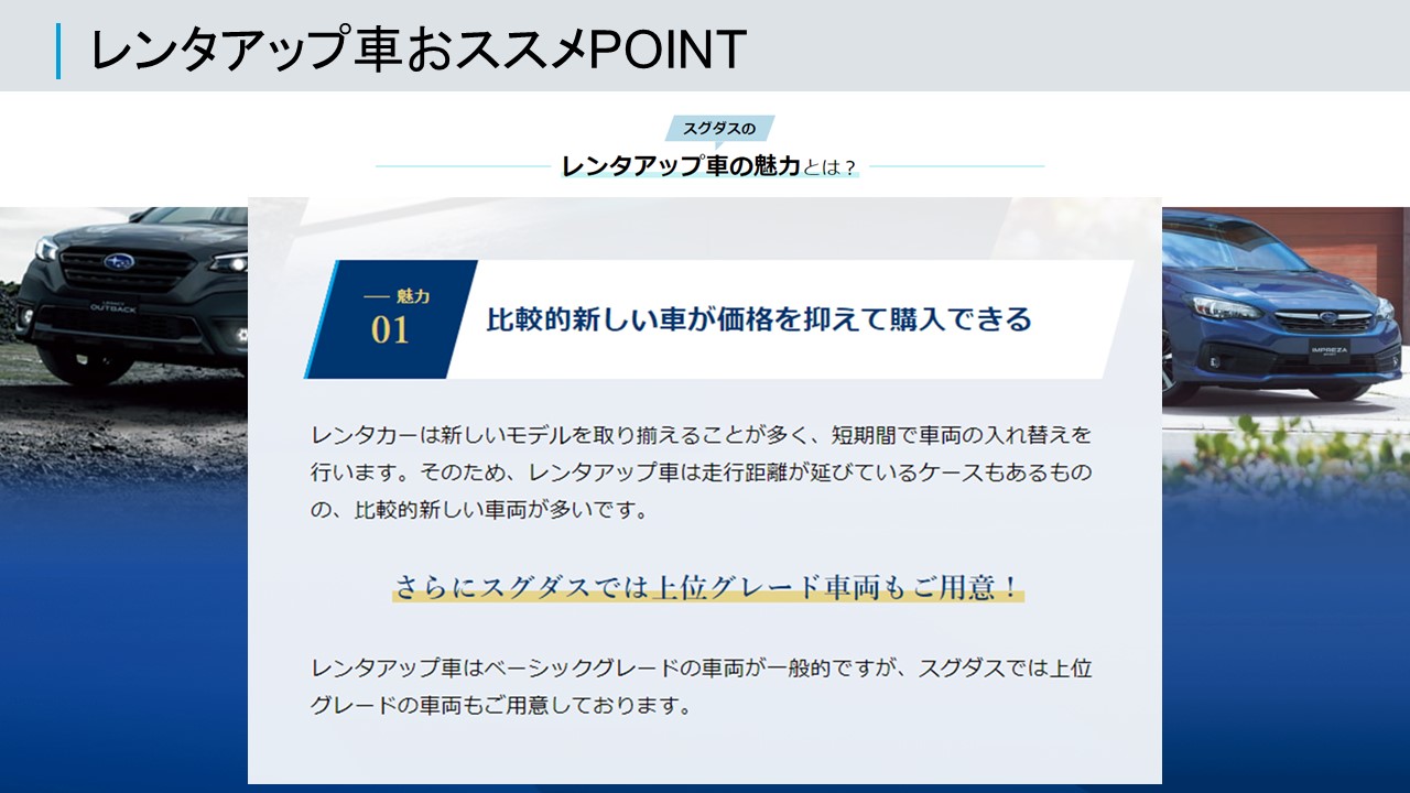レンタカー(全国)の中古車一覧 | 中古車ならスグダス | SUBARU (公式)