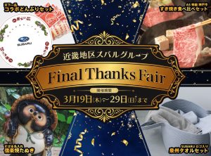 近畿地区スバルグループでの最後のご成約プレゼントになります。