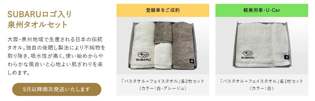 SUBARUロゴ入りの泉州タオルセット