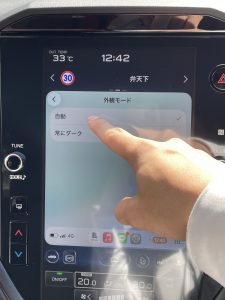 お客様のナビを実際に確認してみると、確かに昼間にもかかわらず、ナビの画面は夜間の暗い画面表示でした。