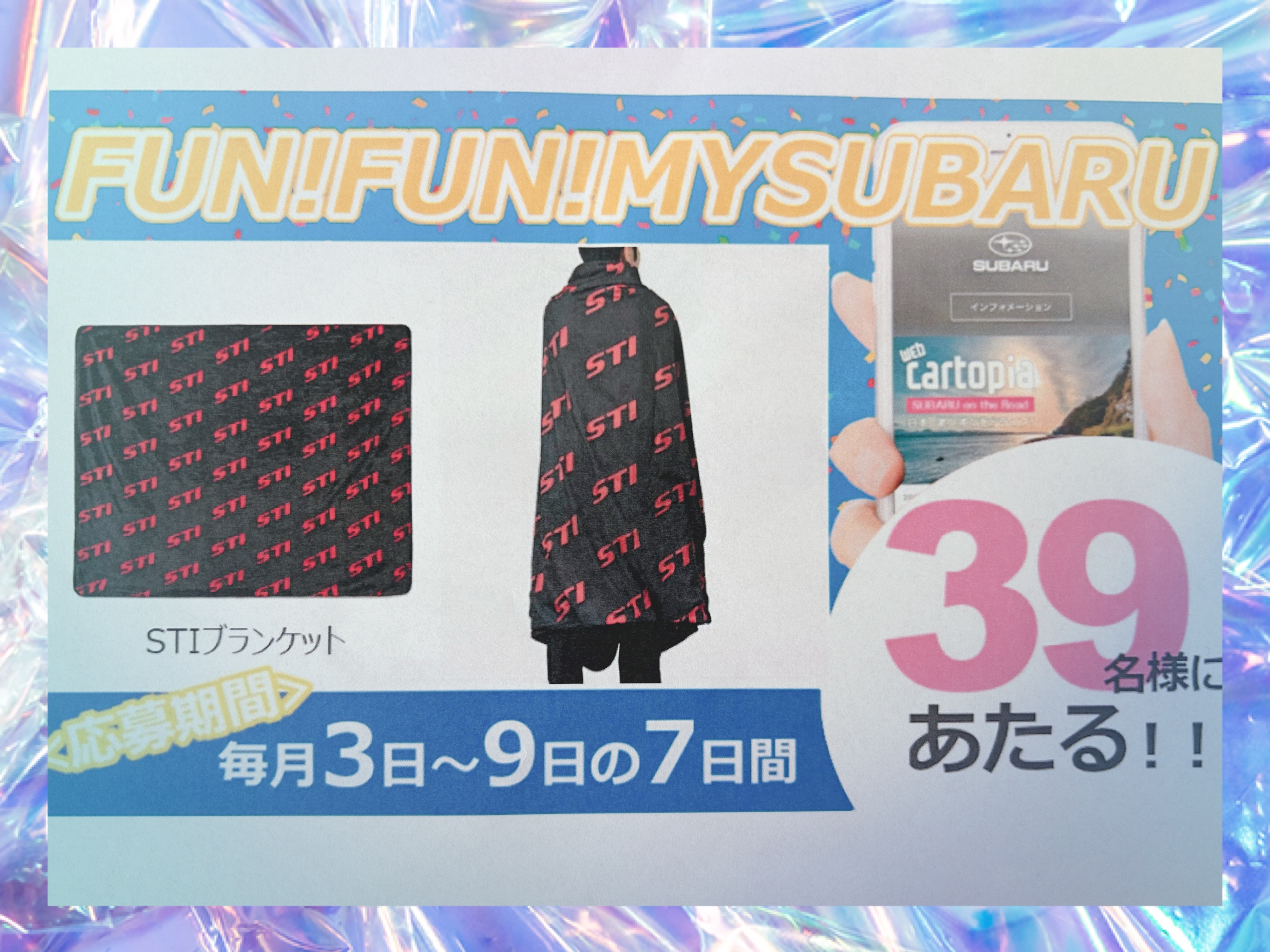 今月はSTIデザインのブランケットが抽選で39名様に当たります![]()