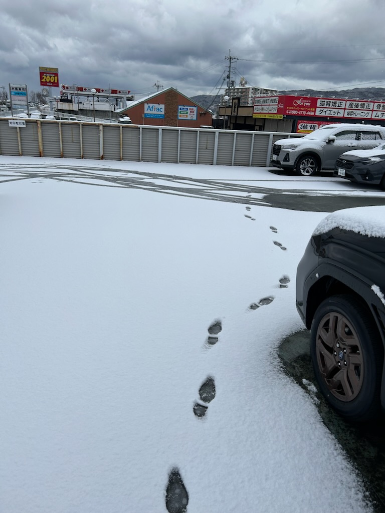 岩出店もかなり雪が積もりまして、車は真っ白になってました。