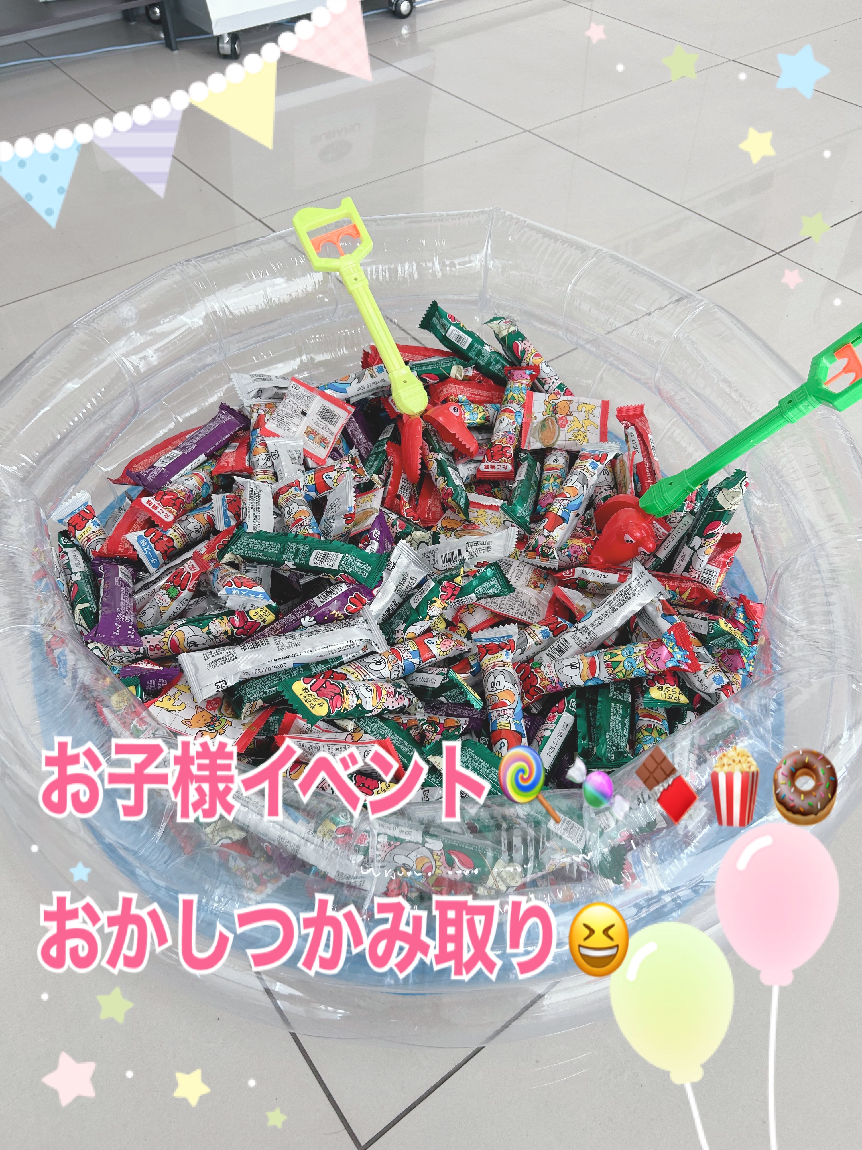 またお子様ご来場のお客様へおかしのつかみ取りイベントも開催中です![]()