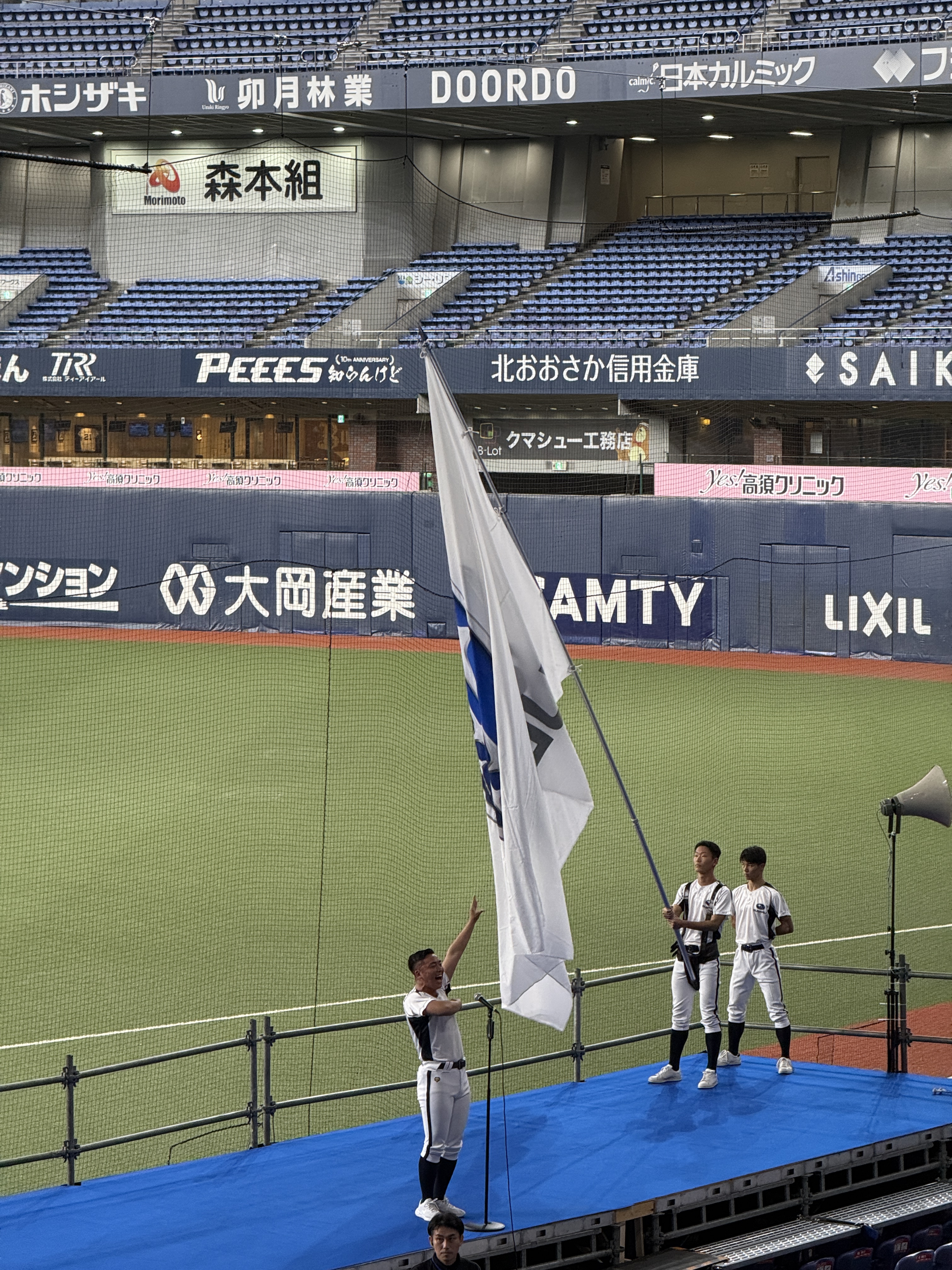 ドームに入ると大きなSUBARUの旗が!