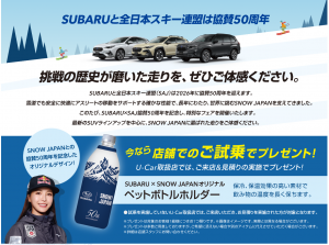 期間中のご試乗いただいた方にSUBARU × SNOW JAPANオリジナルペットボトルホルダーをプレゼント!
