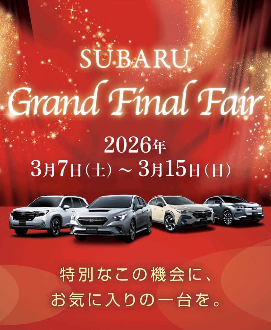 3月7日~3月15日まで スバルグランドファイナルフェアを開催いたします!