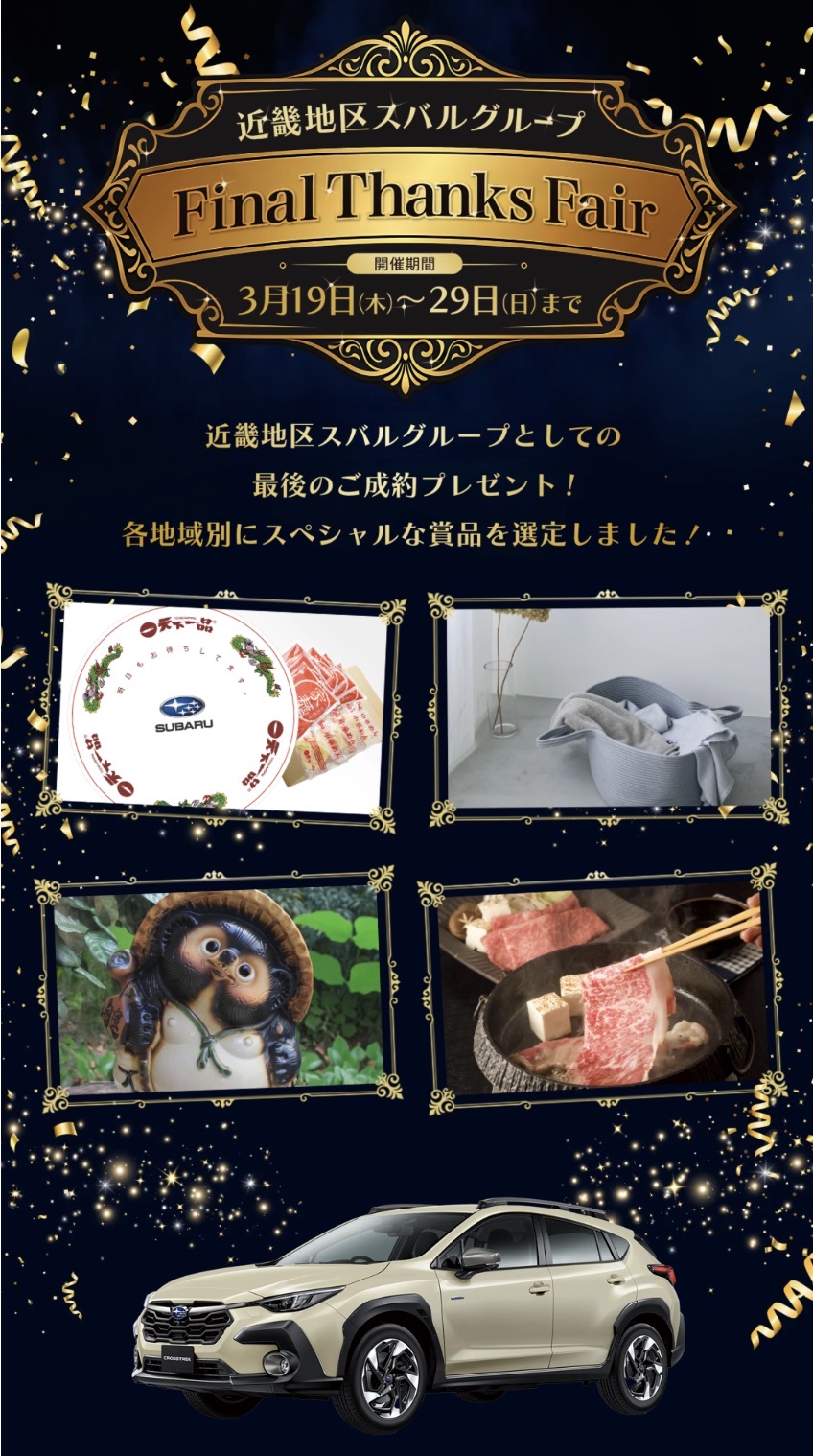 日頃の感謝の気持ちを込めて大阪スバル最後のフェアとなっております。詳しくはフェアページへ!