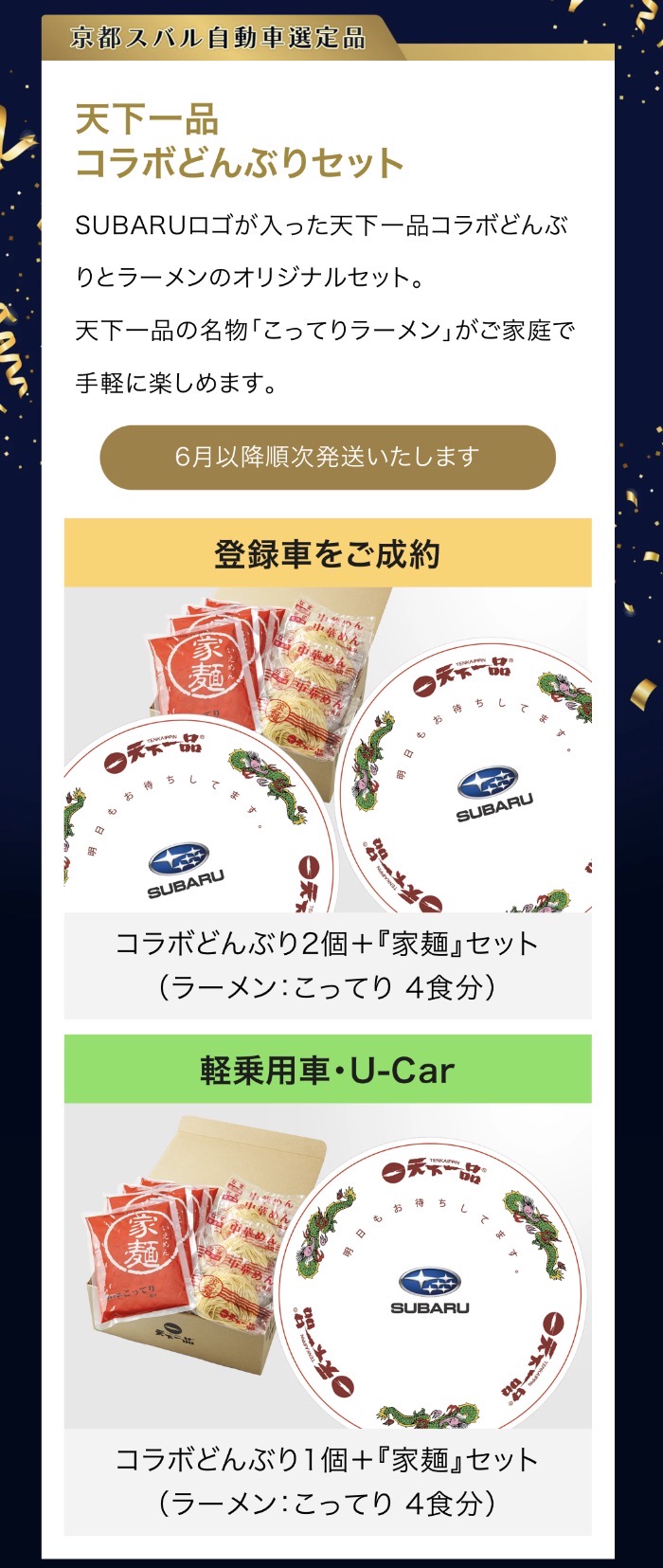 荒谷のオススメは、天下一品ラーメンです!スバルのロゴマークが入っており他では販売しておりません!