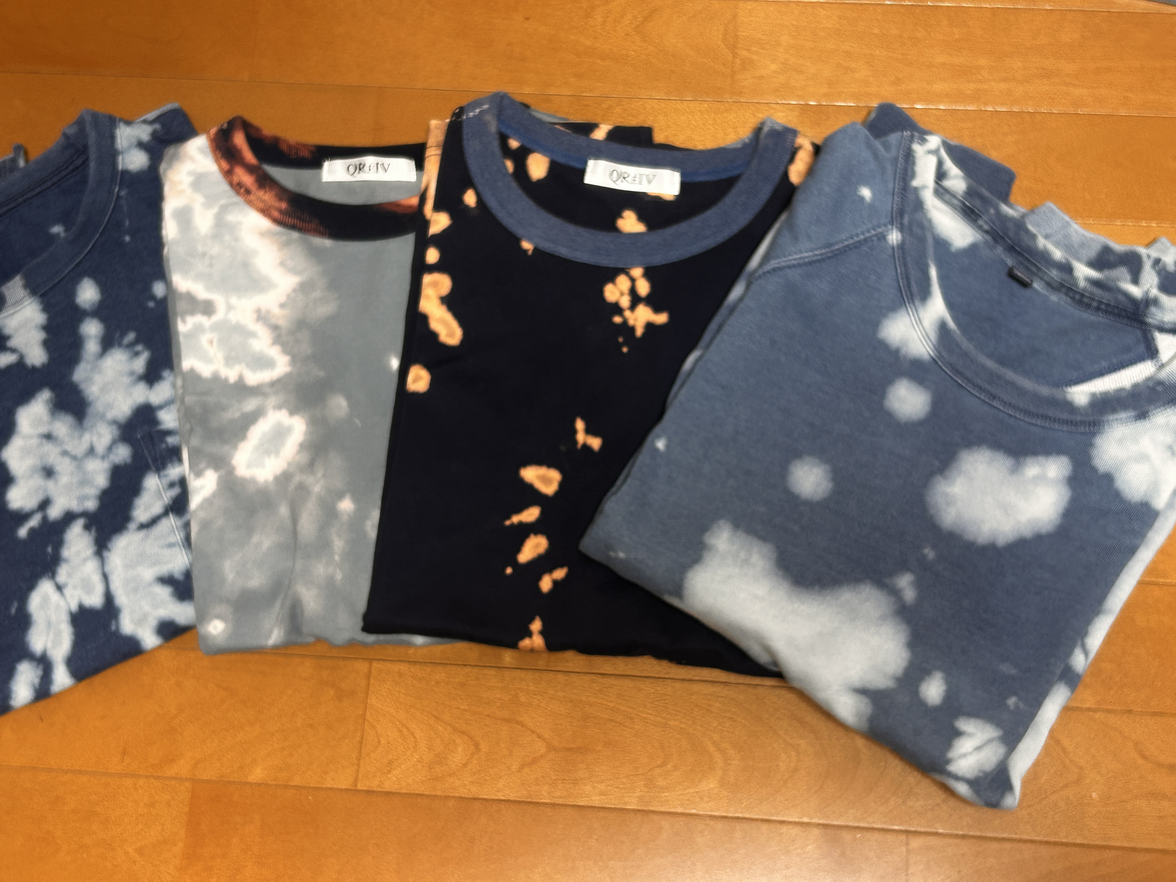 一番右が色あせたスウェットシャツ