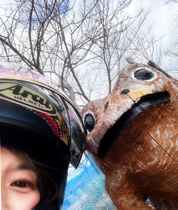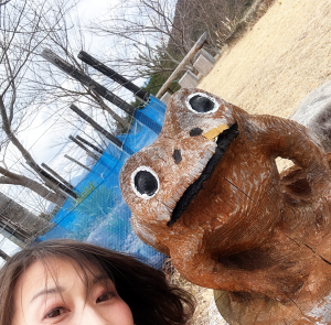 チェーンソーアート作品と記念撮影♪