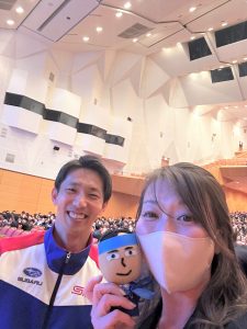 参加しました。(スバルブルーのリボンも付けています♪+ハチマキ)