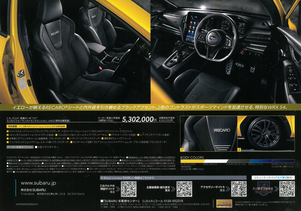 そしてサンライズイエローは先日BRZの限定車でもこの色が発売され人気もあったので、レヴォーグとS4でも販売することが決まりました。