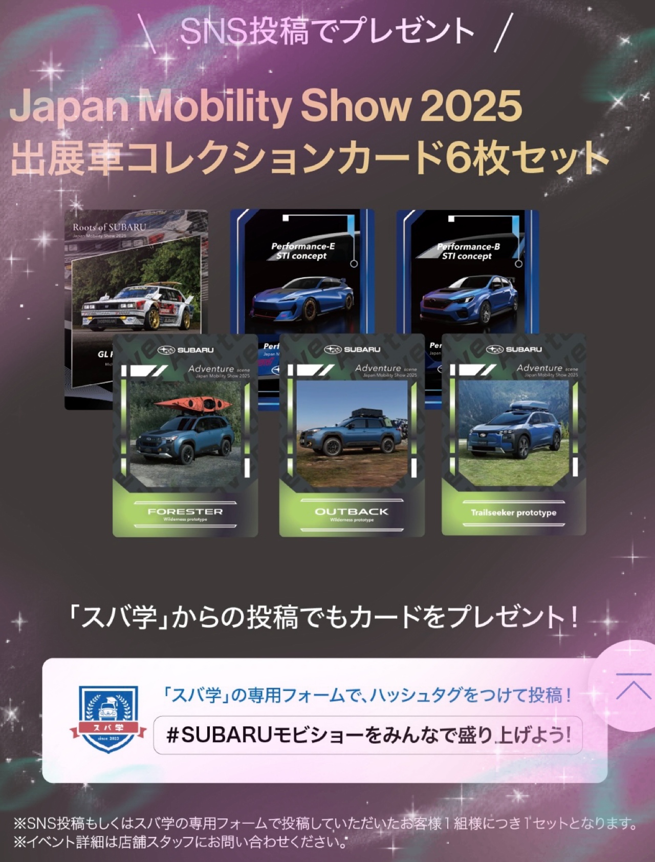 SUBARUコレクションカードを1枚プレゼントいたします!!