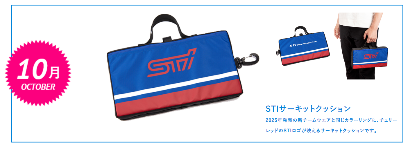 スバルのハイパフォーマンス部門STI公式のファン必携のクッションです。