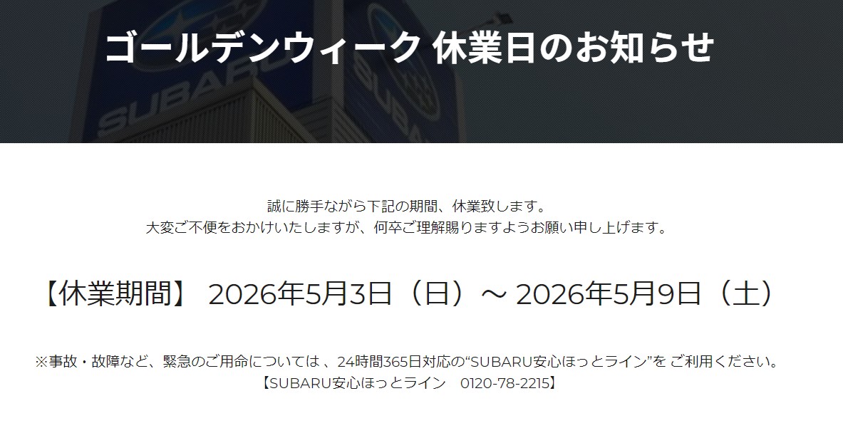 週末は、お近くのスバルへ