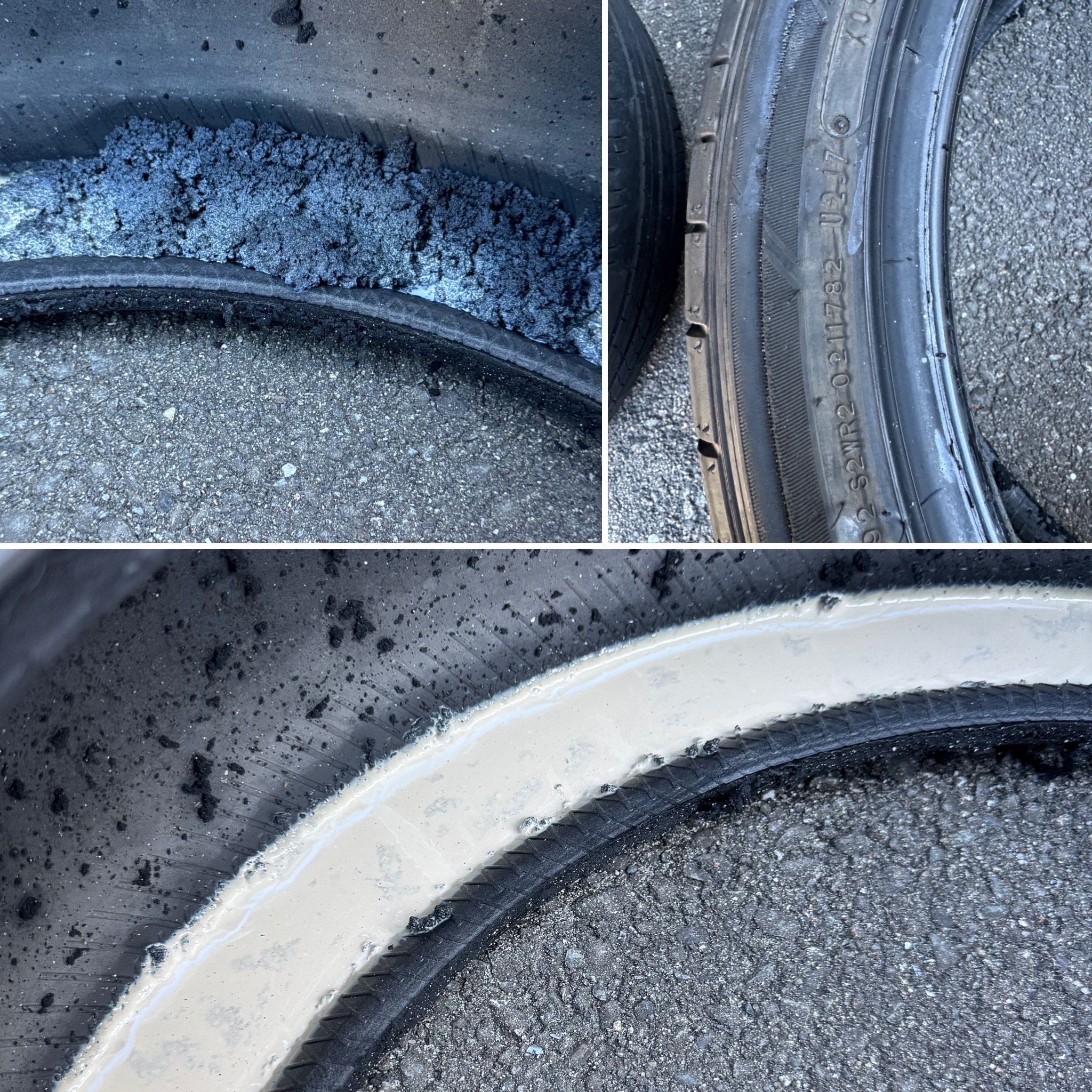 外見は傷が少なくても内側はパンク修理剤やタイヤのカスがびっしり