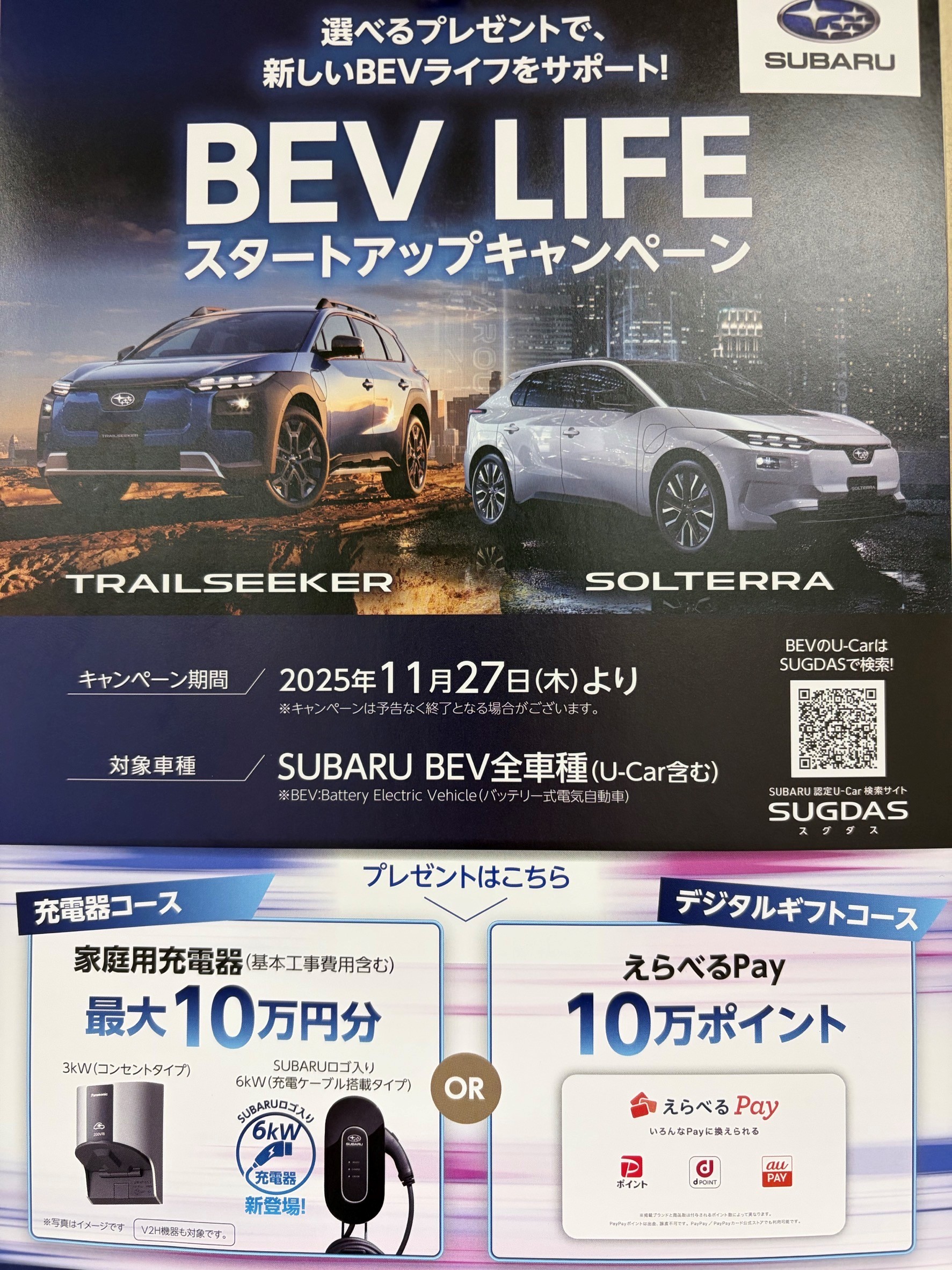 ご成約いただいた方には充電器コースかデジタルギフトコースをプレゼント![]()