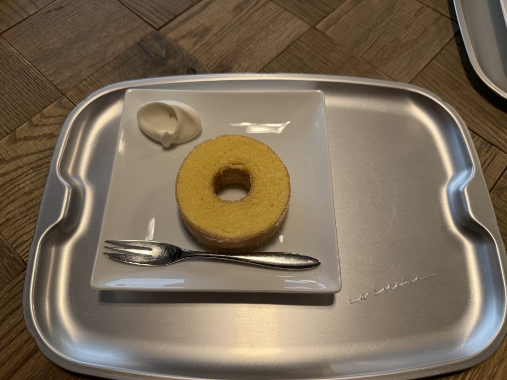 おやつにバームクーヘンを頂きました!出来立てはフワフワで暖かくてとても美味し