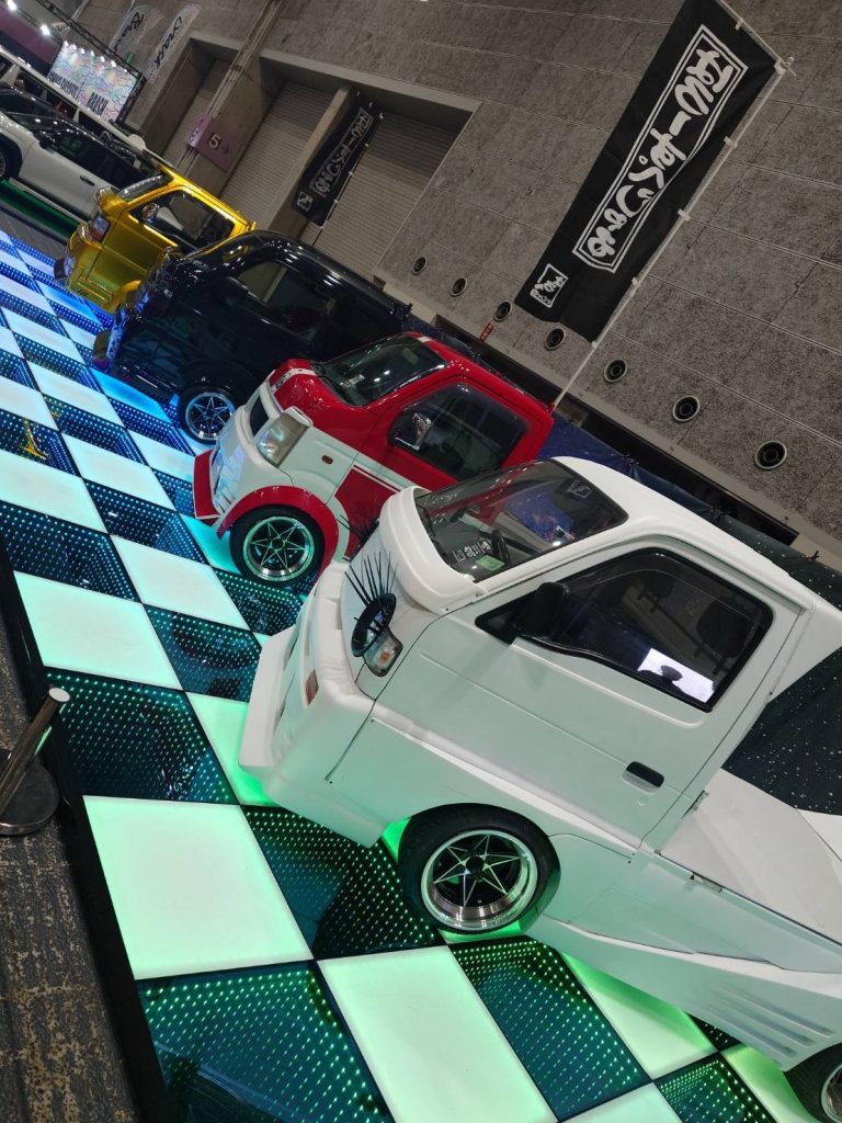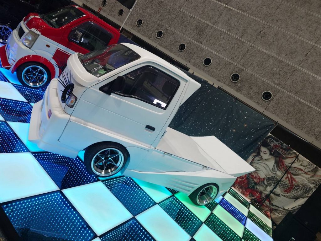 どこか懐かしさを感じさせてくれるエアロパーツをまいた軽トラックは最高にテンションが上がりました。