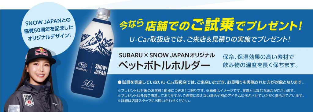 SUBARU X SNOWフェアは14日までの開催です![]()