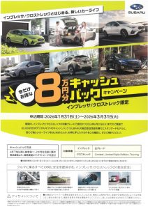 期間中に対象グレードのインプレッサ、またはクロストレックをご購入いただくと、8万円分のデジタルギフトをキャッシュバックいたします!!![]()