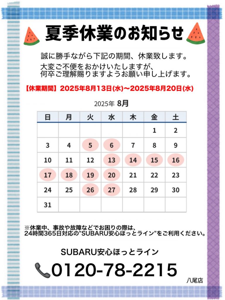 ※8/12(火)営業しております。