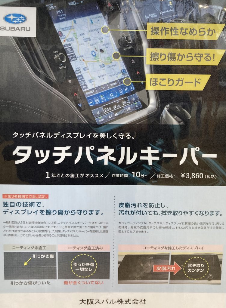ナビなどのディスプレイに施工するタイプのコーティング商品になります。
