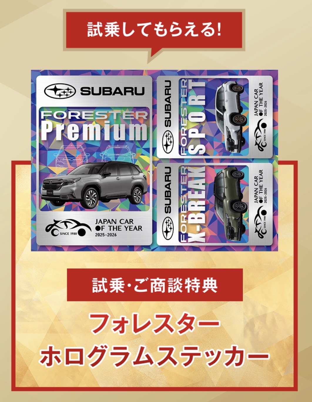 終了間近!! 2025-2026 日本カー・オブ・ザ・イヤー受賞記念フォレスターフェア開催中!