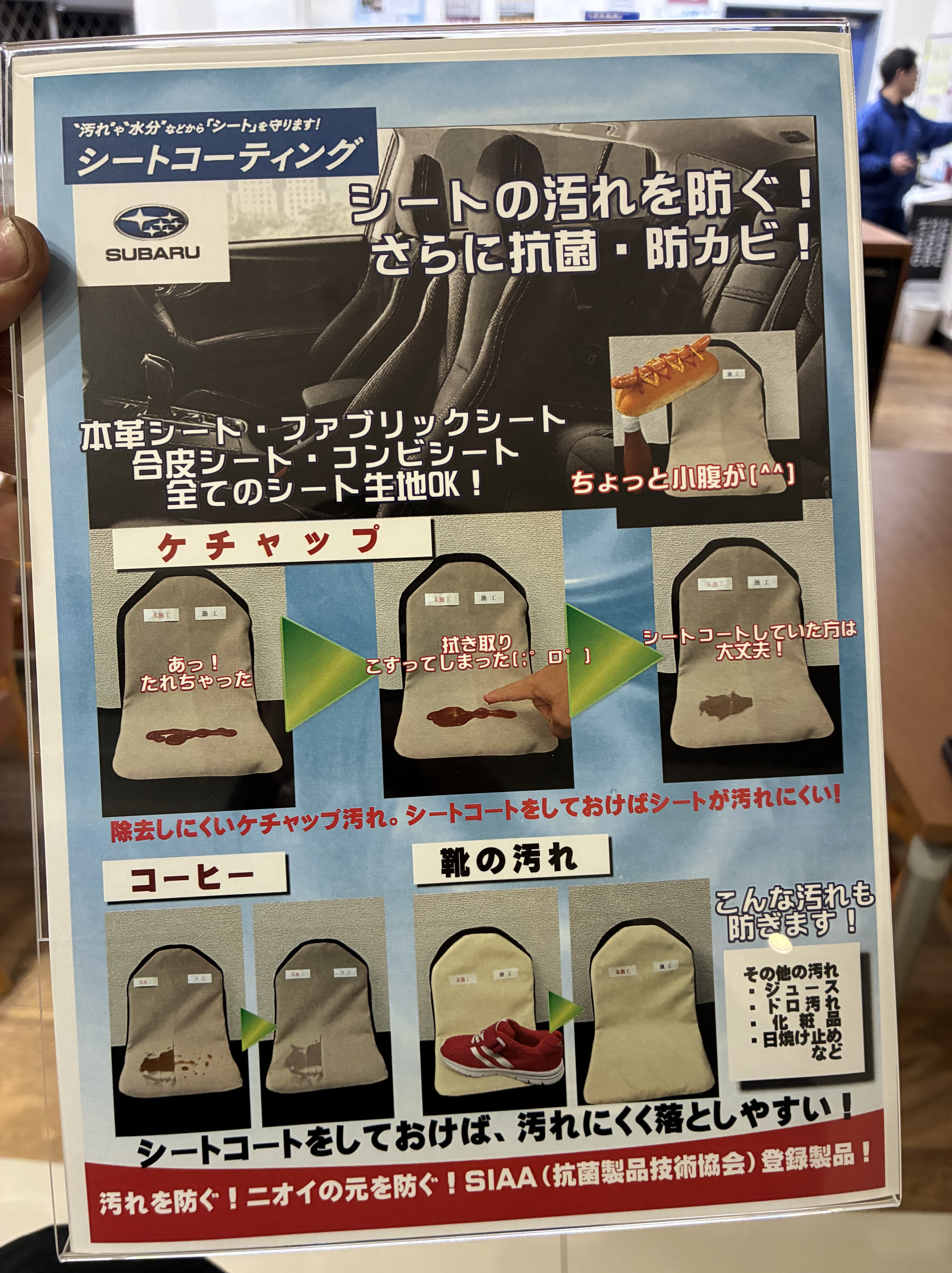シートコーティングは、汚れが染み込みにくくなるだけでなく、抗菌・防カビ効果も期待できます。