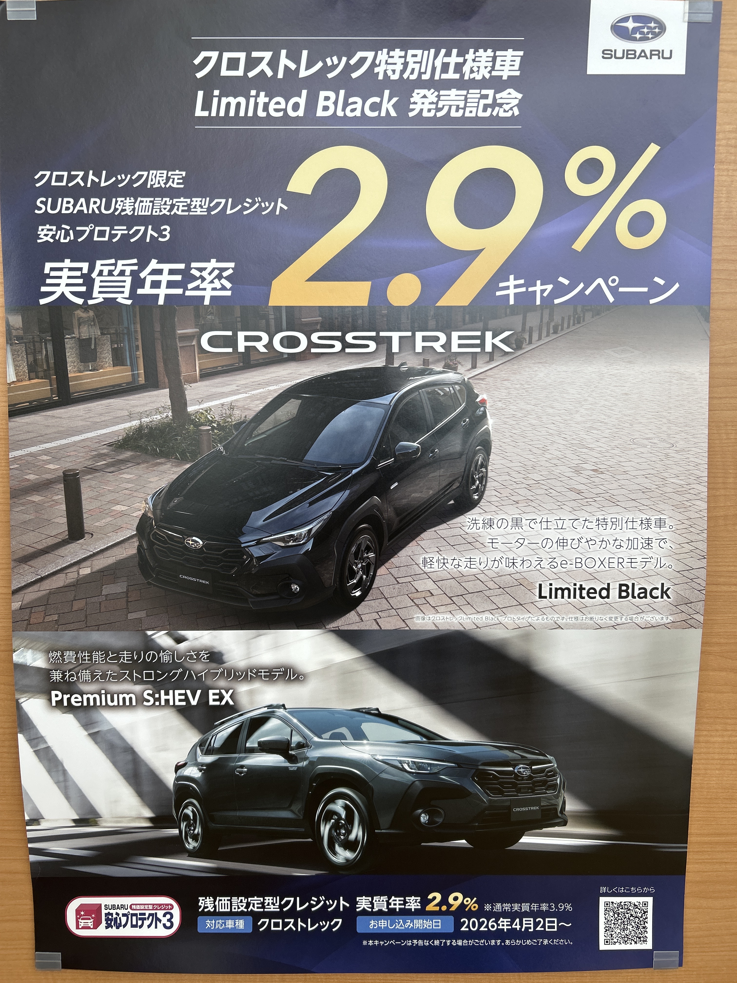 クロストレック全グレードで適用 残価設定クレジットご契約時